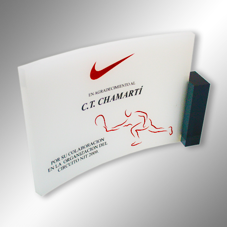 Permite una grabación personalizada de logotipo y texto a todo color, garantizando un acabado exclusivo y llamativo. El diseño incorpora una columna lateral de 2 cm de grosor, disponible en varios tonos, que refuerza la versatilidad de esta pieza. El resultado es una placa de alta gama, ideal para realzar la importancia de cada reconocimiento.
